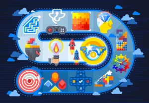 O processo de criação de jogos envolve 5 PRINCIPAIS etapas, desde a concepção da ideia até o lançamento do jogo corporativo. Aqui está um resumo das principais etapas do processo de criação de jogos: